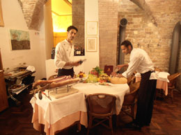 Sig.re Guglielma e Marina. All'interno nelle ampie sale medioevali potete trovare un ampio menu' di carne e pesce tutto accompagnato da ottimi vini. I prezzi per la qualita' della cucina e dei vini sono contenuti dalle 30 alle 40 euro a persona.
